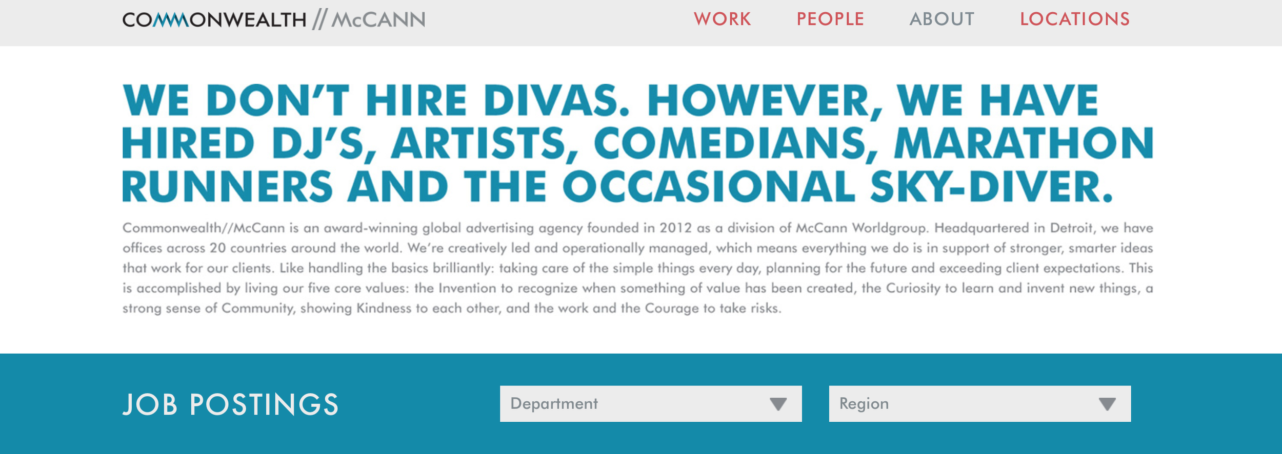 No matter how great an agency is at branding their clients, they have a challenge when it comes to telling their story in their own voice. The Commonwealth//Mc-Cann site was designed to do just that by focusing on the agency's greatest asset: the people who worked there. And letting them tell their own stories in candid photos and quick, often haiku-like biographies. The work was highlighted in case studies, along with information on each of the global offices.